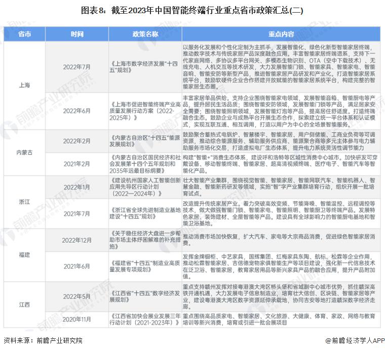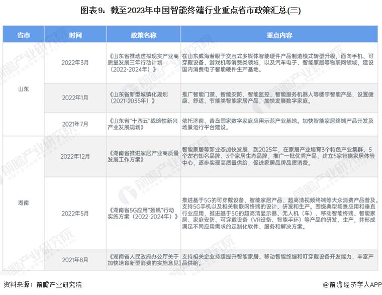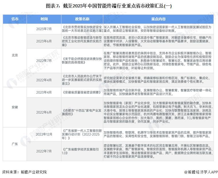 ——重点省市智能终端行业政策汇总