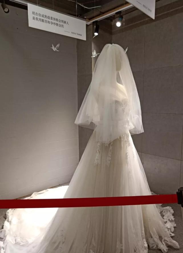 最后还有一件白色婚纱映入眼帘,孤零零地伫立在角落,仿佛一位正在等着心爱的人来娶她的新娘,却又没有等到……