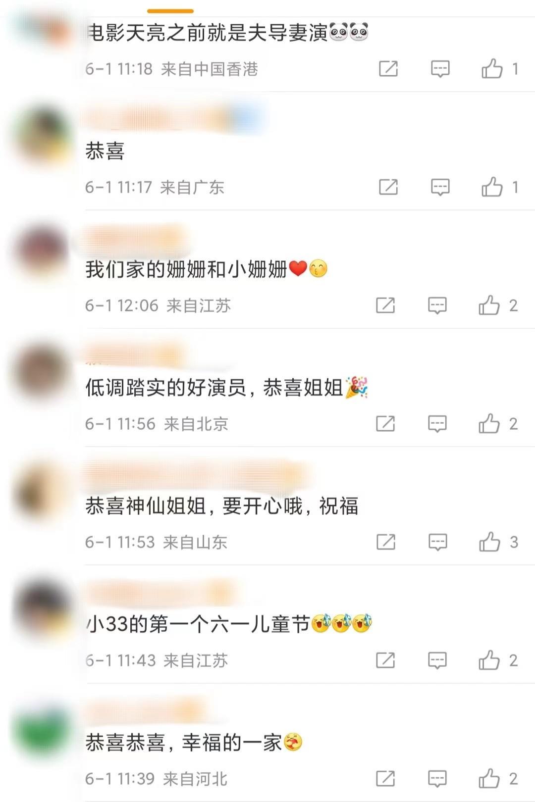 不少网友在看到吴中天和杨子姗升级当爸妈的消息后,纷纷在社交媒体平台上留言表示:“恭喜”“我们家的姗姗和小姗姗”“恭喜神仙姐姐”“恭喜恭喜,幸福的一家”……