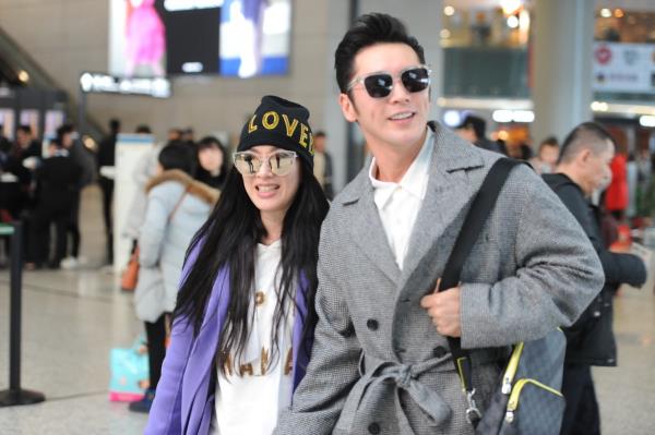 钟丽缇张伦硕夫妇上海虹桥机场出发
