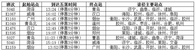 重磅!五莲火车站新增3趟客车!郑州、汉口……最新最全列车时刻表!