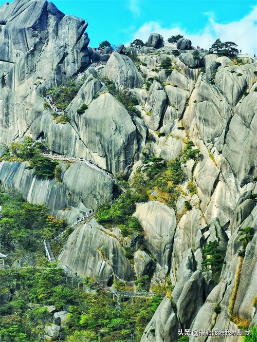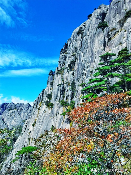 怪石,主要表现在黄山险峰林立,到处分布着花岗岩石林和石柱,造型形象生动,都有巧夺天工之妙,用手机拍下来就是一幅绝妙的风景画。
