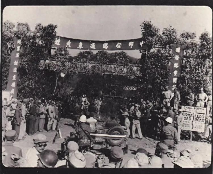这张照片反映的是二战时期中印公路通车典礼,参加典礼的应该大部分都是美军和国民党军。