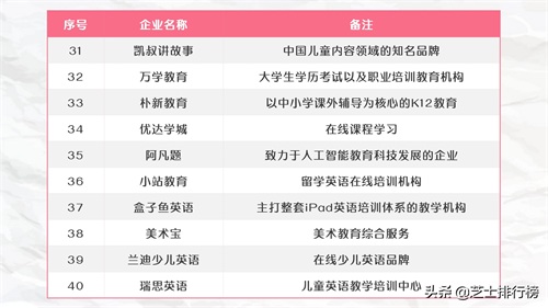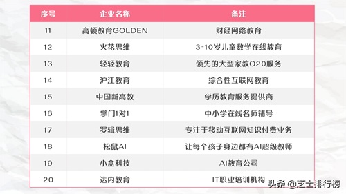 2020年教育培训机构百强榜单TOP100