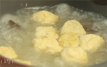 7、鸭血、豆腐、鸭肝放入鸭架汤锅中,将其煮开。