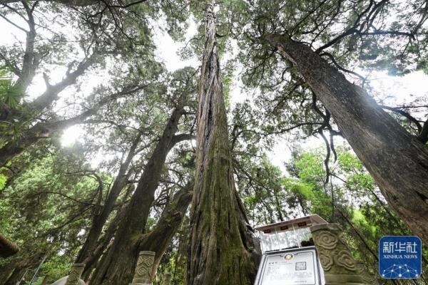 这是7月24日在四川省广元市剑阁县翠云廊拍摄的树龄约2300年的剑阁柏。