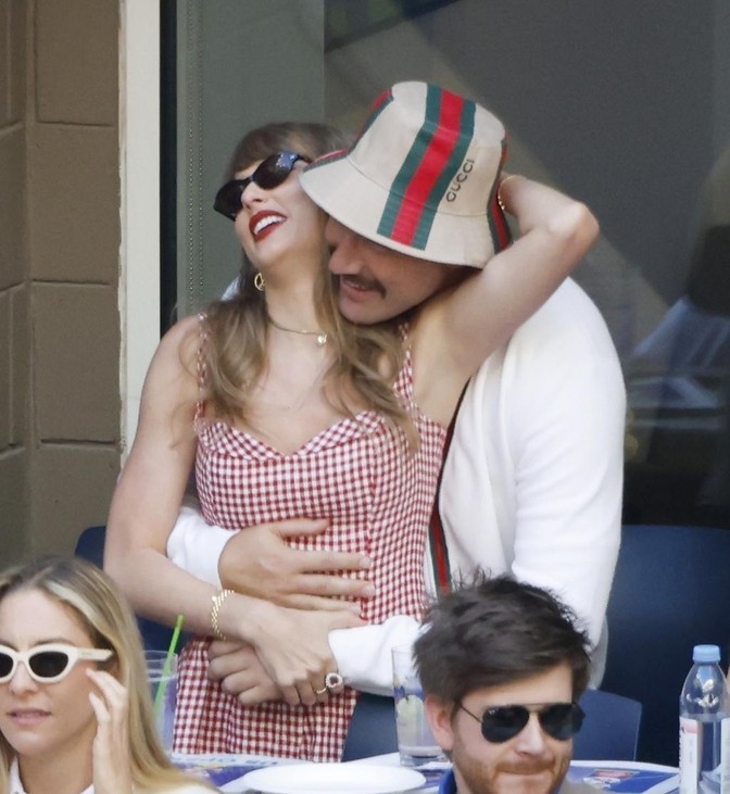 2024年9月8日,泰勒·斯威夫特(Taylor Swift)与男友特拉维斯·凯尔斯(Travis Kelce)现身美国网球公开赛男子单打决赛现场,成为全场焦点。两人身着休闲时尚的服装,亲密互动,展现出甜蜜的恋爱状态。
