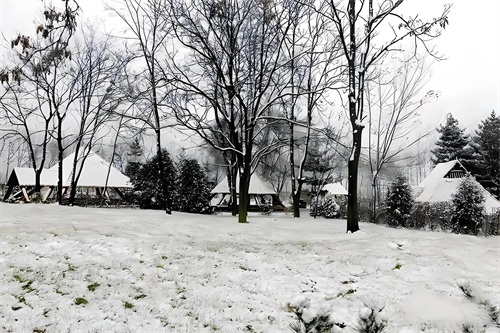 “夜深烟火尽,霰雪白纷纷。”一千多年前,白居易看到的霰雪是夜里下的,我这儿,霰雪是连天带夜下的。宋朝杨万里说,他那会霰雪下的是“寒声带雨山难白”,咱这会是山野皆白,一片苍茫。