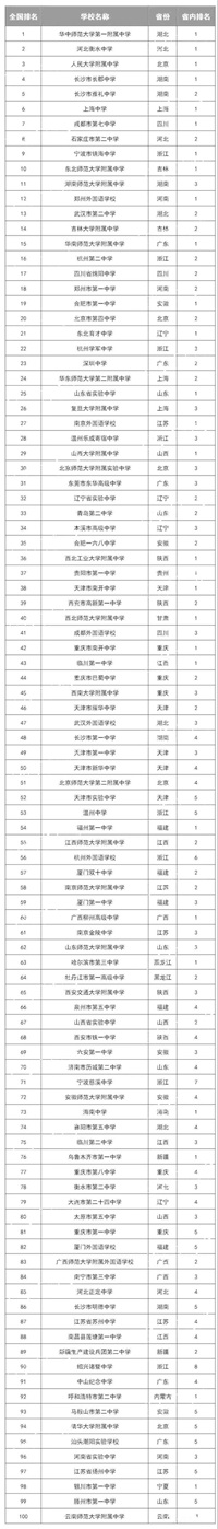 1.长沙市长郡中学(全国排名第四位)始建于1904年,前身为长沙府中学堂。湖南省首批重点中学,同时也是长郡教育集团的建立者,