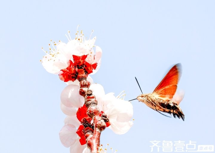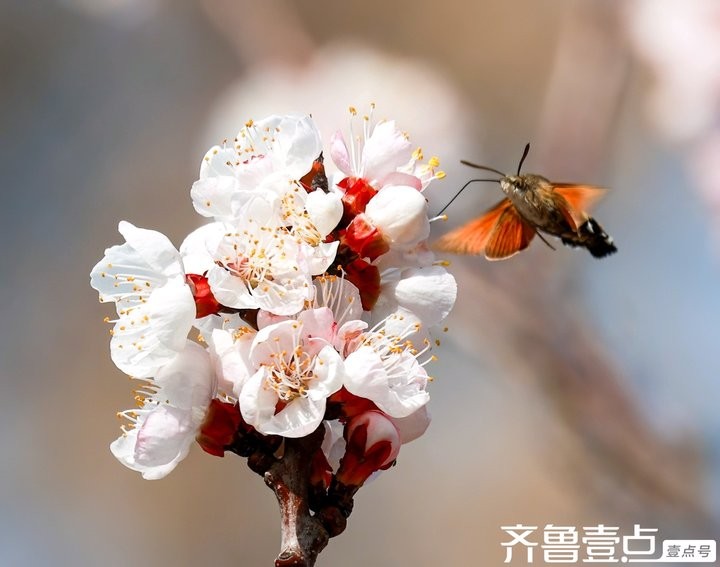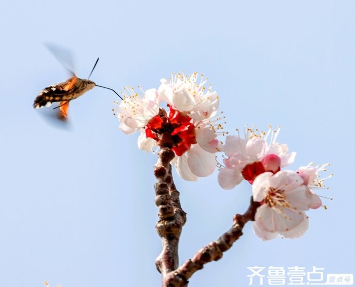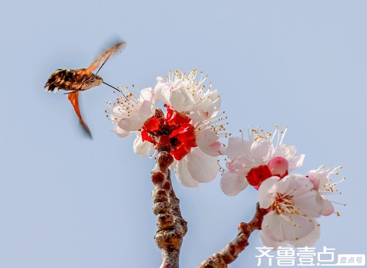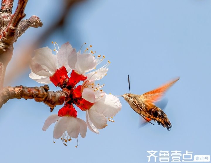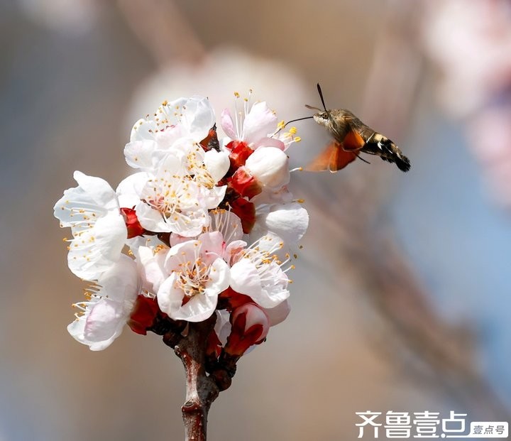 蜂鸟鹰蛾与杏花生态互动,传播花粉