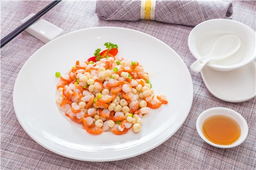 这类保持原料本色的菜肴,色泽嫩白,给人以清爽之感,食之亦利口。鱼翅、鱼骨、鱼肚等都适宜配顺色菜。