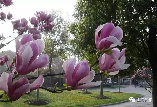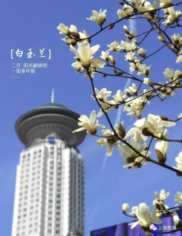 其中的白玉兰在上海的气候下,开花特别早。白玉兰花大而洁白,开放式朵朵向上。白玉兰为上海市市花,象征着一种开路先锋、奋发向上的精神。
