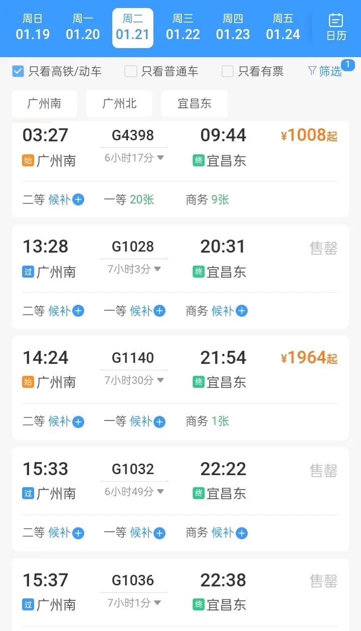 比较有意思的是,这趟临客列车比目前图定的所有广州南站到宜昌东站的高铁列车速度都要快,全程只需要6小时17分;要知道图定列车中最快的G1032广州南到宜昌东区间都需要6小时49分,最慢的G1140甚至需要7小时30分。最快的图定列车比我们这趟临客列车都还要慢半个小时,果然印证了那句经典名言:自古临客出标杆。