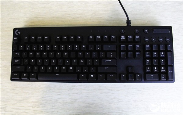 此外,其支持白色背光,右上角还有多媒体键区、游戏模式锁止键,包括罗技独创的音量滚动条。