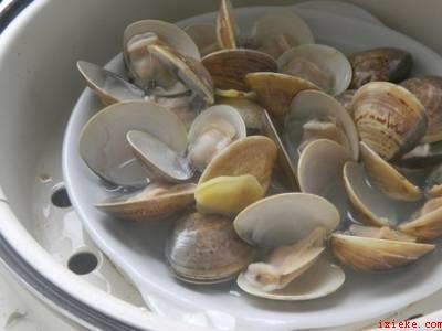 续水清洗,加少许生姜片。3蛤蜊蒸至壳开
