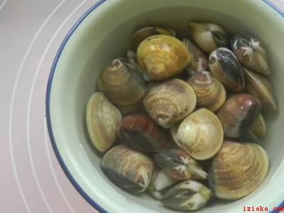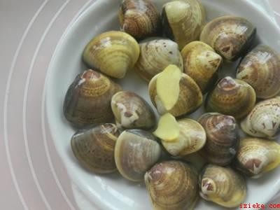 将蛤蜊用盐水泡浸1至2小时。2放进生姜片