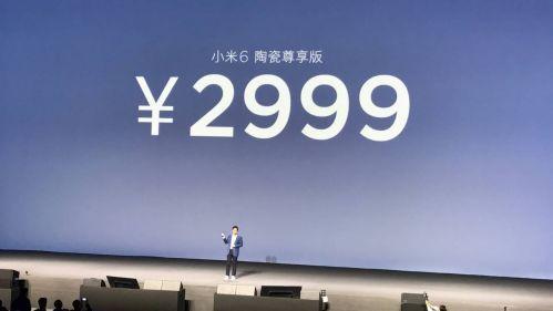 小米6陶瓷尊享版,2999元,6GB+128GB。