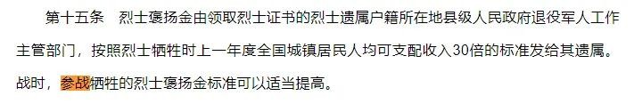 首先,条例第十五条关于提高烈士褒扬金标准的规定,是对参战牺牲烈士家属的一种特殊慰藉。这意味着,那些在战场上英勇牺牲的军人,其家属将获得更为丰厚的经济补偿,以减轻他们因失去亲人而带来的经济压力,同时也是对烈士英勇事迹的崇高致敬。例如,某位士兵在边境冲突中不幸牺牲,根据这一条款,其家庭将获得高于普通烈士标准的褒扬金,体现了国家对参战牺牲英雄的特别尊重。