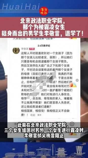 北京政法职业学院霸凌事件后续 三个女生继续上课 挺身而出男生退学
