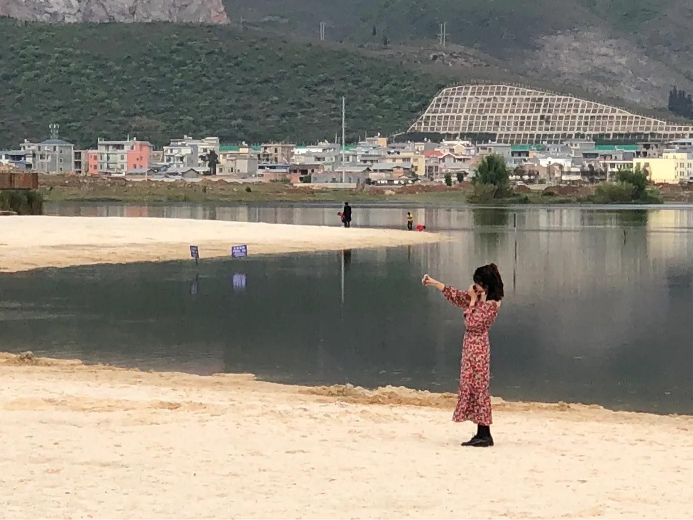 沙滩上休闲的游客,怎么都与内陆贫困县联系不起来。