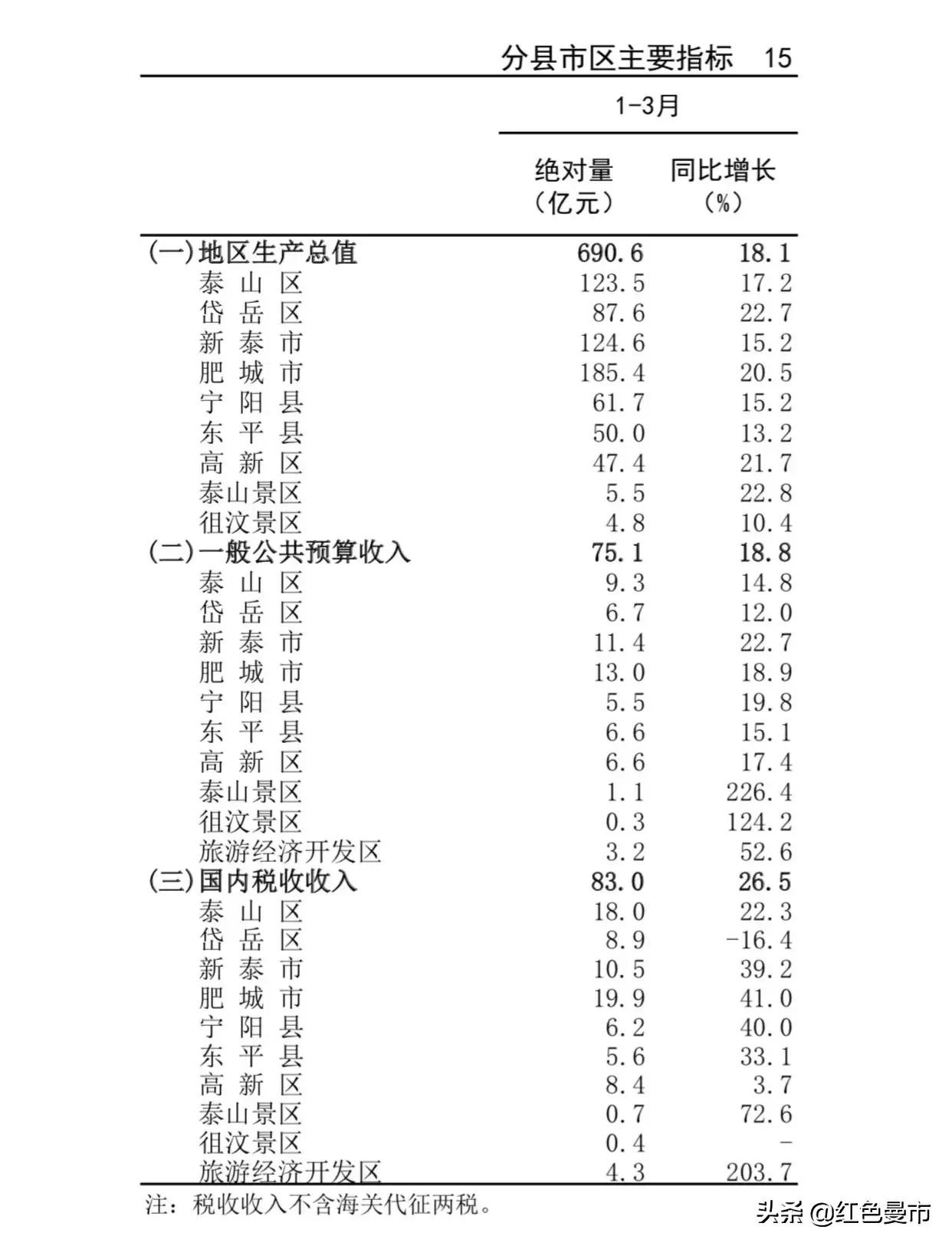 比如在往年的年度和月度的部分经济指标中,泰安高新区、泰山景区、徂汶景区都会单列,在今年一季度中,泰安旅游经济开发区的部分指标开始单列,正式与岱岳区脱钩。