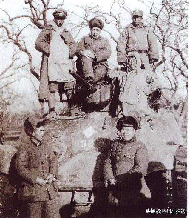 陈毅、张云逸、张鼎丞等人在鲁南战役缴获的坦克前合影
