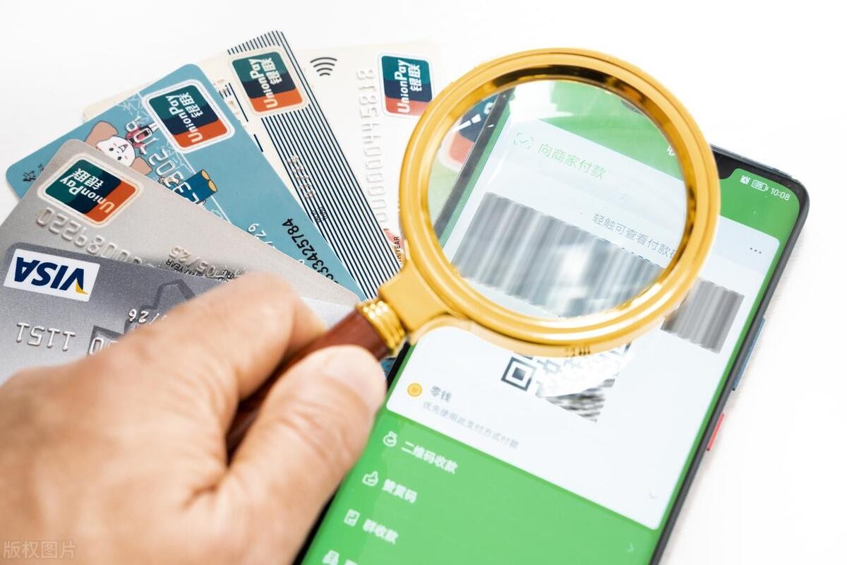 银行卡手机支付与放大镜创意