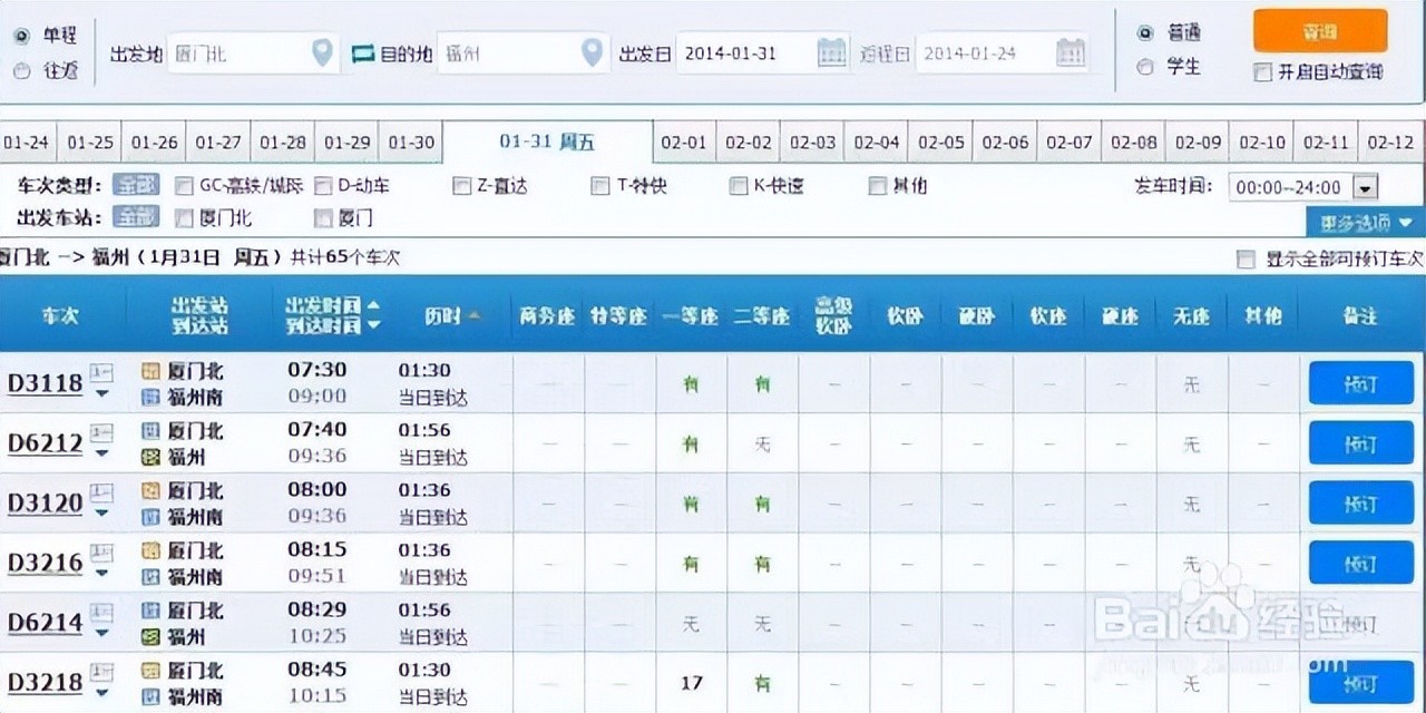 4、选择车票类型和座位等级。根据您的出行需求,您可以选择不同的车票类型,如硬座、软座、硬卧和软卧等。您还可以选择座位等级,如一等座、二等座、商务座等。在选择车票类型和座位等级时,请注意价格和余票情况。