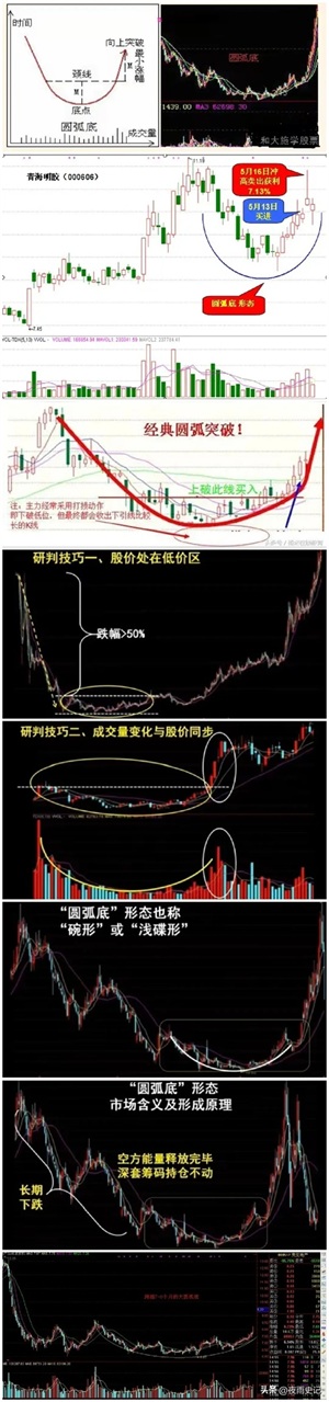 一旦“圆弧底”图形形成后,投资者可抓紧时机,大量买进。“圆弧底”是标准的股价反转型,此后,股价定会不断上升 。