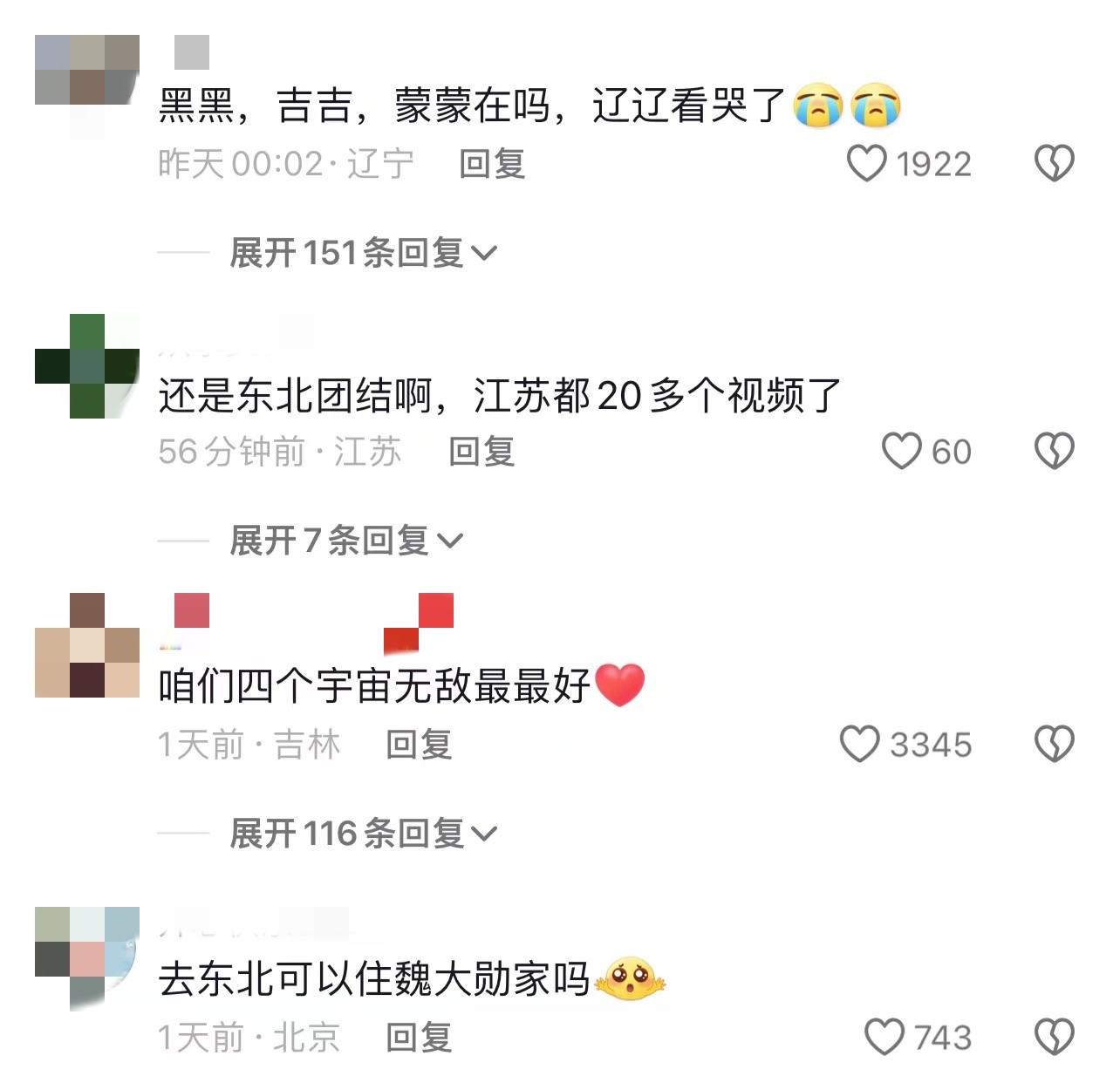 有网友提到,“还是你们东北团结啊,四省联动,我们江苏一个省各地市县发了20个多个视频”。