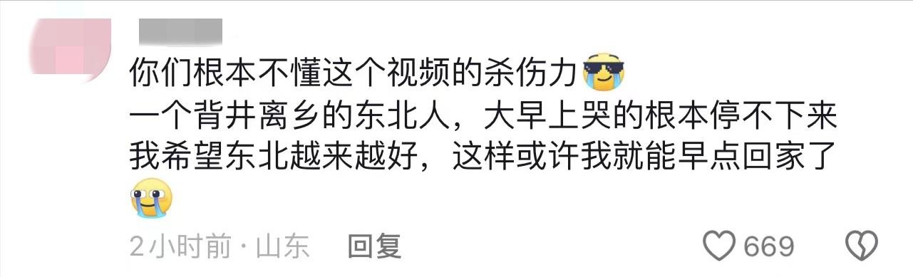 对于那些离开家乡的东北人来说,这个视频更具有特殊意义,“视频太感动了,希望家乡越来越好,等到东北的春天”。这表达了他们对家乡的深厚情感和对未来的美好期待。