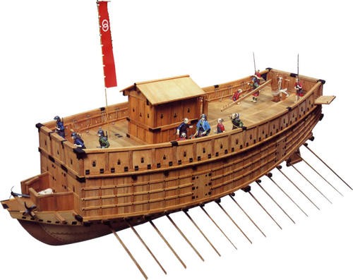 关船可以看做是小一号的安宅船,其船头是一个尖体,用于撞击,主要是日本海盗用于设置关卡使用,因此得名。