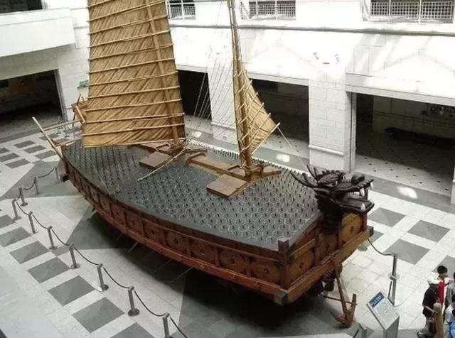 历史上真实的龟船,长35米,宽11.8米,高5.2米,因外形酷似乌龟因此得名。