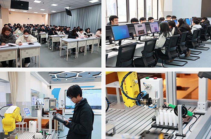 学校于去年9月正式开学,师资力量强,教学成果丰硕。专任教师中有教授3人、副教授和高级实验师等8人、讲师等中级专业技术人员9人,“双师型”教师10人。产业教授3人,高级工程师4人。教师团队100%为研究生学历,其中获得博士学位1人。校外专业技能带头人1人,兼职教师2人。在实验实训室,工业机器人技术专业的学生们正在聚精会神地模拟零部件的生产加工流程,专业教师在一旁耐心指导。“通过操作这个机器,我们还可以模拟快递的分拣。”专业老师说道。