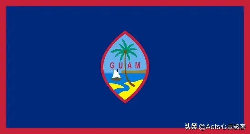 关岛的国旗又称之为“属地旗”,旗帜四周是红色的边框,代表着热情勇敢;中间蓝色部分代表着海洋和天空;中间椭圆形里的棕榈树和帆船则代表关岛的特产。