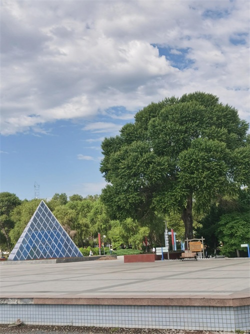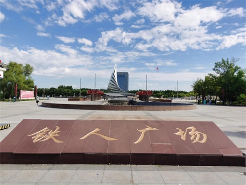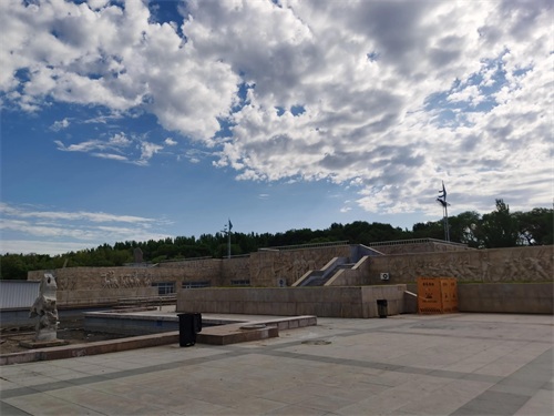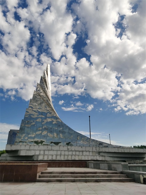腾飞雕塑在中央,银光闪耀盘旋上,