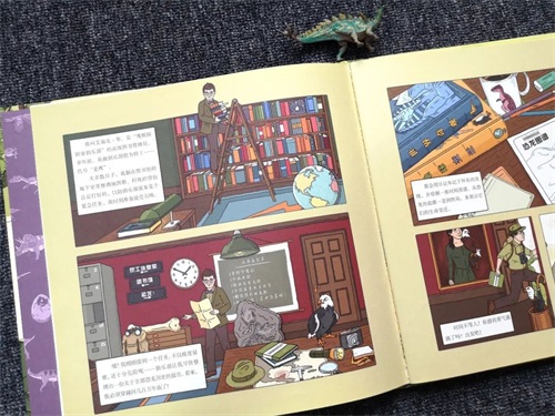 用漫画+故事的形式引入,特别能吸引孩子兴趣。还有很多小细节,例如公章上的鹰跟图书馆1号文件这些。