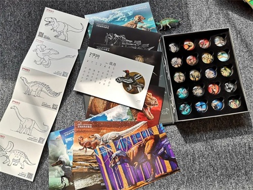打开,看到赠送2020日历,这一张张明信片形式的日历完全抓住了我的心,赵闯老师笔下的恐龙真是太赞了!除此之外,还配备了5张赵闯老师教画恐龙的明信片,扫码就能学,还能给上面的恐龙填色。