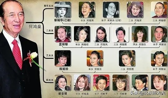 至此,赌王四房太太全部到齐,何鸿燊和四名太太一共育有十七个子女。