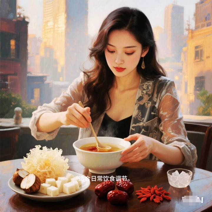 养生作用:银耳含天然胶质,搭配马蹄的爽脆,温和滋养身体,红枣提供自然甜味,焕发肌肤健康状态。