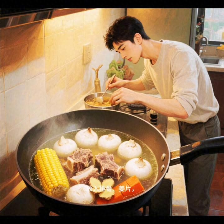 养生作用:马蹄的清爽搭配排骨的鲜香,补充日常能量。玉米和胡萝卜富含膳食纤维,帮助维持消化系统顺畅运作。