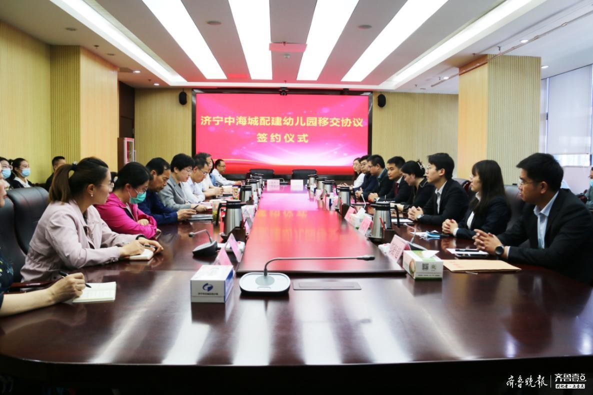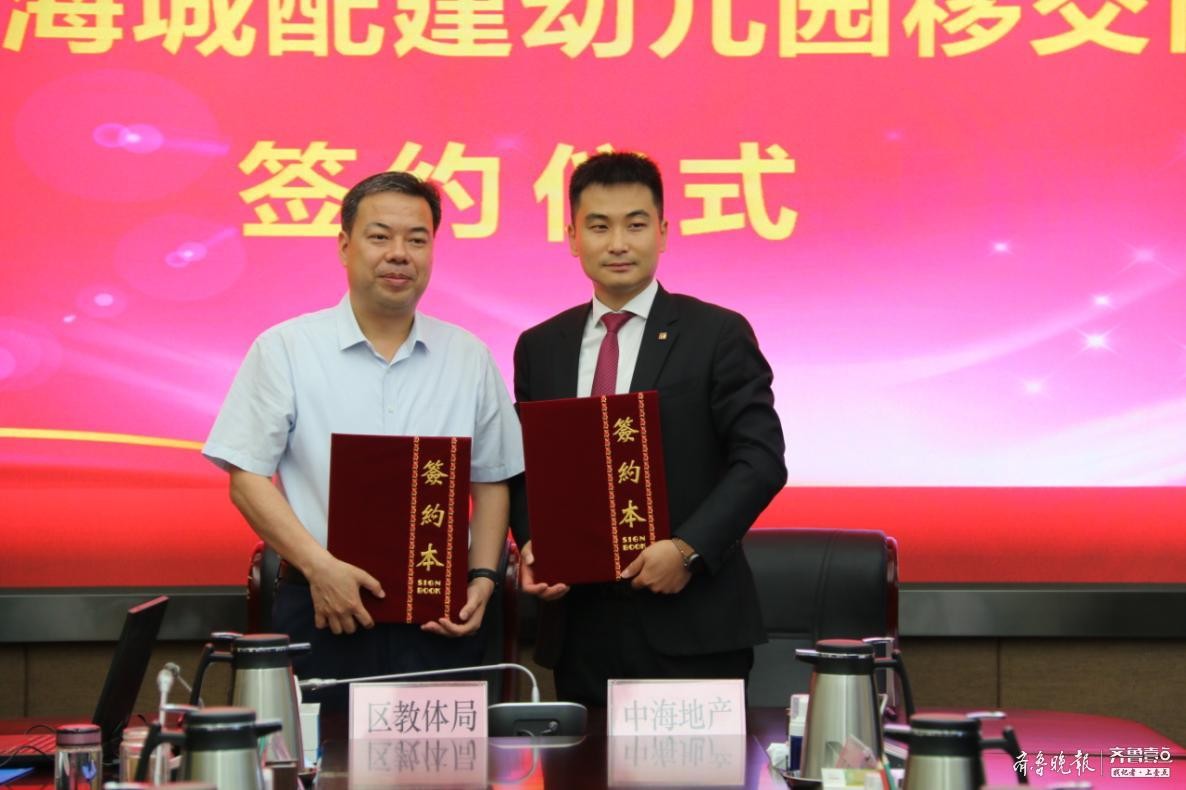 随后任城区教育和体育局局长李书争代表区教体局与中海地产济宁公司总经理张超共同签订了移交协议。根据协议内容,济宁中海将于2021年7月31日前将竣工验收合格的中海城配建幼儿园无偿移交给区政府,并配合办理不动产相关手续,同时做好相关资料移交和跟进保修;后期该幼儿园命名为“济宁市任城幼儿园中海城分园”,并由济宁市任城幼儿园管理。区政府负责将中海城业主纳入济宁市霍家街小学分校、宋庄中学(暂定名)服务区,保障合规适龄儿童的就学需求。