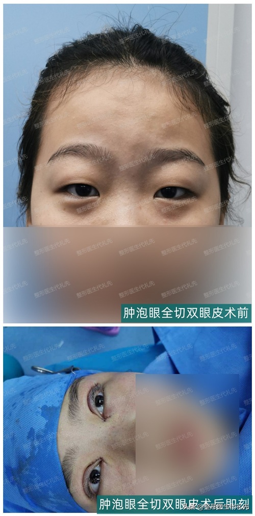 肿泡眼全切双眼皮术前术后即刻对比