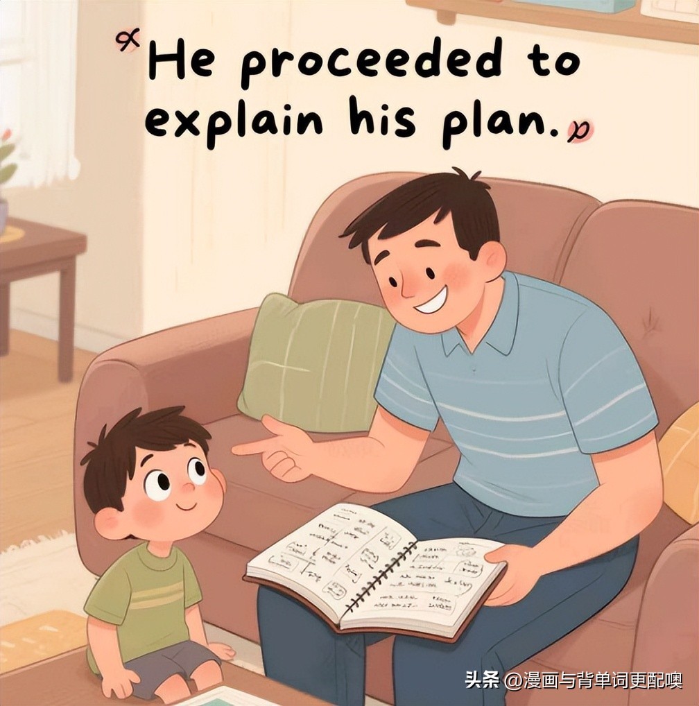 例2:He proceeded to explain his plan.(他接着解释他的计划)