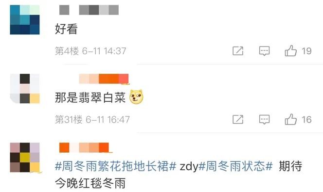 周冬雨礼服的颜色比较清新,而有不少网友却吐槽她的造型很像大白菜。也有人表示还是很好看的,还有人称:“期待今晚红毯。”