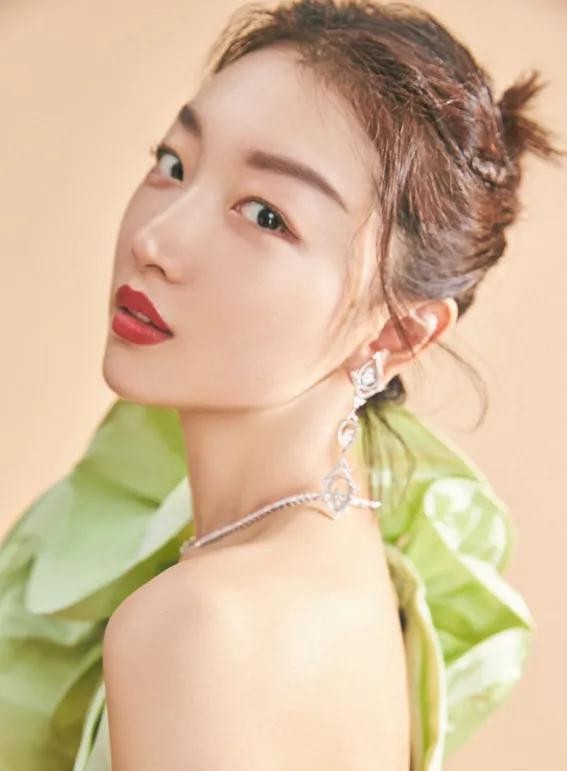 周冬雨的身材一向是偏瘦弱的,而绿色的礼服却让她身材曲线变得更加完美了一些,尤其是肩颈部分的设计,既突出了她的直角肩,花朵的设计又让她增加了一份高贵冷艳感。
