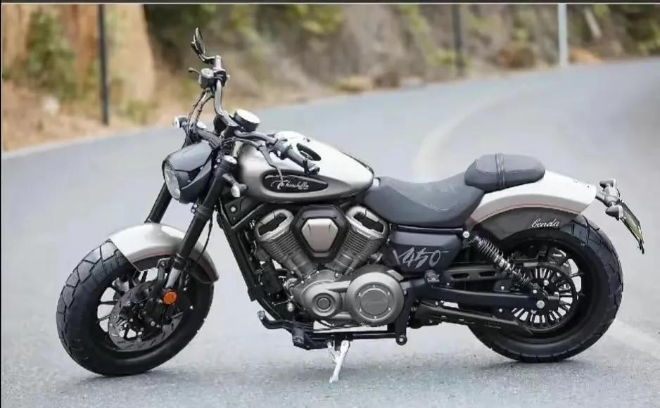配置方面,金吉拉450标配全车LED灯源,前后碟刹标配双通道ABS和TCS系统,颜色方面提供月影白、星空灰、魂动红、南星蓝、玄夜黑共5种车身颜色可选。车架采用摇篮式钢管车架,倒置前叉减震。动力方面,搭载一台全新的V2双缸水冷电喷发动机,标配滑动离合,最大功率37KW,最大扭矩45N.m,动力性能偏向低扭中高转特点。