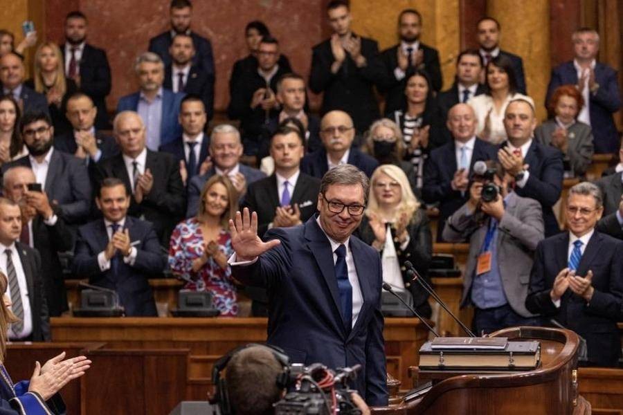 当地时间5月31日,塞尔维亚总统武契奇在首都贝尔格莱德国民议会大厦宣誓就职,开启自己的第二个总统任期,在宣誓时,他引用孔子的话表达自己的决心。
