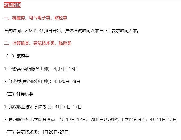 每年湖北省技能高考技能操作考试时间为4月,相关信息通过各主考院校网站查询;
