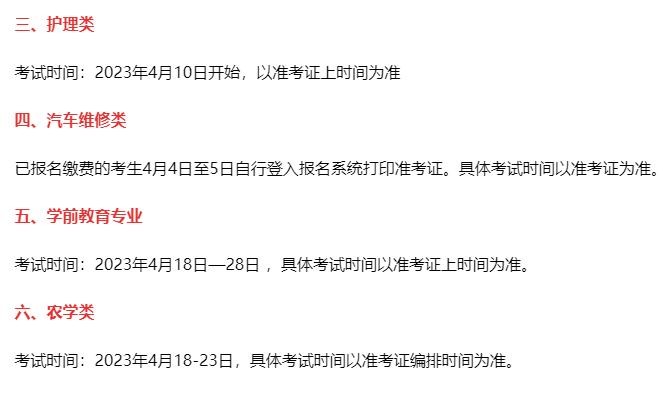 各专业类别考试时间安排